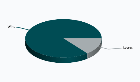 | Playing at | Wins | Losses | Tie | Win Pct |