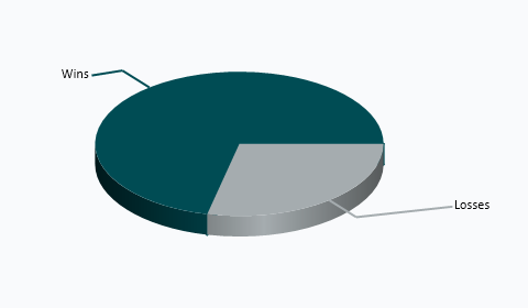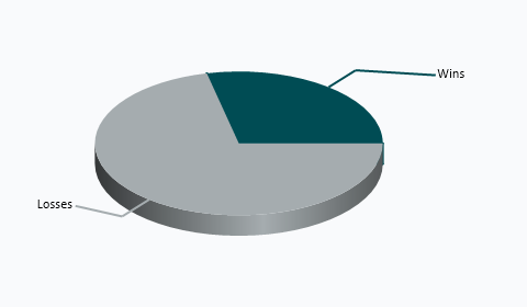| Playing at | Wins | Losses | Tie | Win Pct |