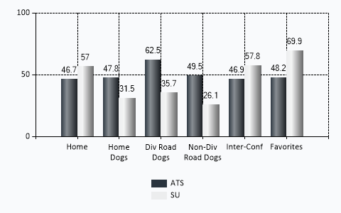 | Home Dog ATS | 42 | 46 | 1 | .478 |