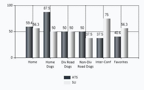 | Home ATS | 9 | 6 | 1 | .594 |
