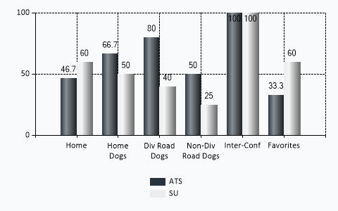 | Home Dog ATS | 4 | 2 | 0 | .667 |