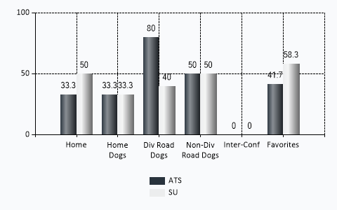 | Home Dog ATS | 1 | 2 | 0 | .333 |