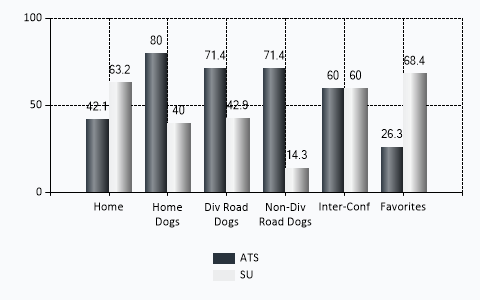 | Favorite ATS | 5 | 14 | 0 | .263 |